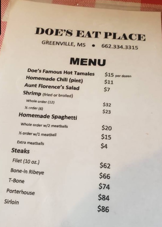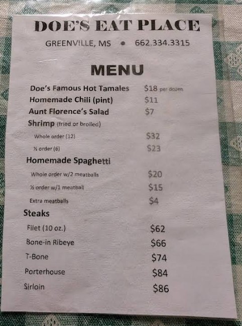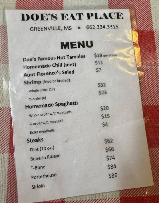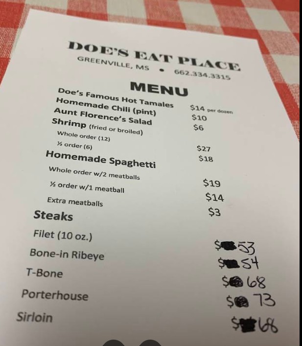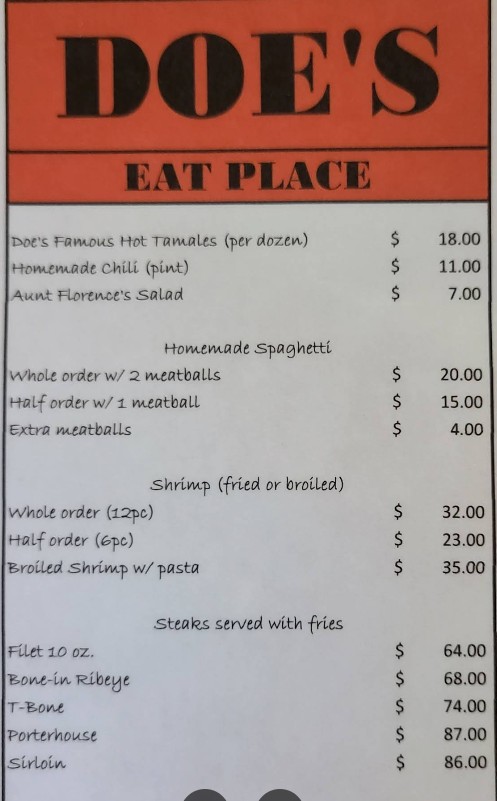 Doe’s Eat Place Restaurant is a legendary American steakhouse in Greenville, Mississippi, known for its bold flavors, generous portions, and rich Southern heritage. Famous for perfectly cooked steaks and classic tamales, Doe’s Eat Place Restaurant offers a casual, no-frills dining experience where quality and tradition come first. Whether you’re a local regular or a first-time visitor, our restaurant delivers authentic comfort food and a welcoming atmosphere that has made Doe’s an icon for generations.